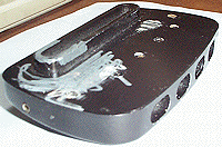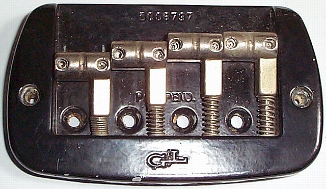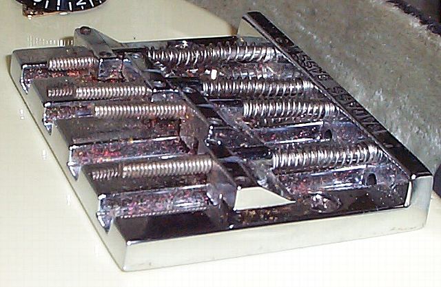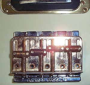 G&LのはMusicmanのミュート部分をとっぱらった感じです。6mm程の高さの出っ張りがあり、ボディに埋め込まれています |