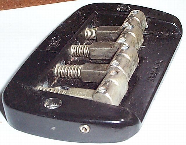 G&Lは横に駒を押さえるネジがついていてこれを締めると駒はビクともしません。簡単ながら優れたアイディアと思います |