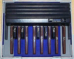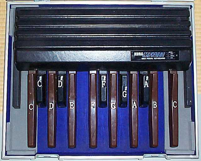 KORGのMIDIペダル、MPK130です。 ホントはmoogのタウラスが欲しかったのですがそんな物買えるわけも無く(^^;; 音源が自由に選べるこれにした次第です。 暗くても良く見えるように鍵盤に音程を貼りました(言い訳(-o-;;;)