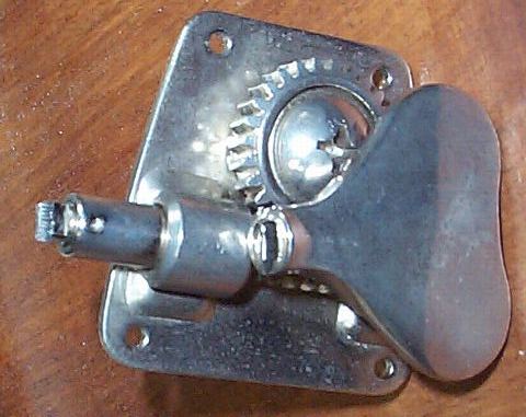 ◆BBやS付きSB等に使われているハート型のペグの事。触り心地も良く回し易く見た目も 個性的で良いのですが、つまみ部分がシャフトに被さる構造の為、ぶつけたりするとつま み部分とシャフト部分の間にガタが出来てしまい、演奏中にビリついたりしてしまいます。 それが原因で、BB-2000一号の方はペグを交換したのですが、何とか直せない物かと思い、 取り外し品で修理にチャレンジしてみました〜