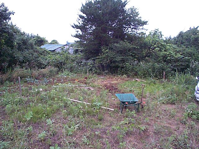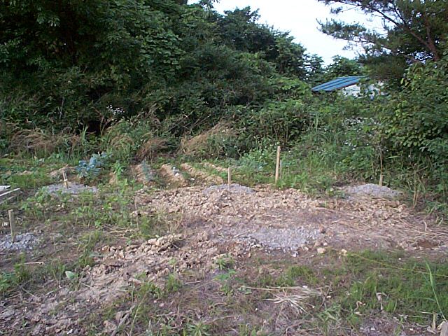 置き場所全体の図。草ぼーぼーで、土はふかふか。